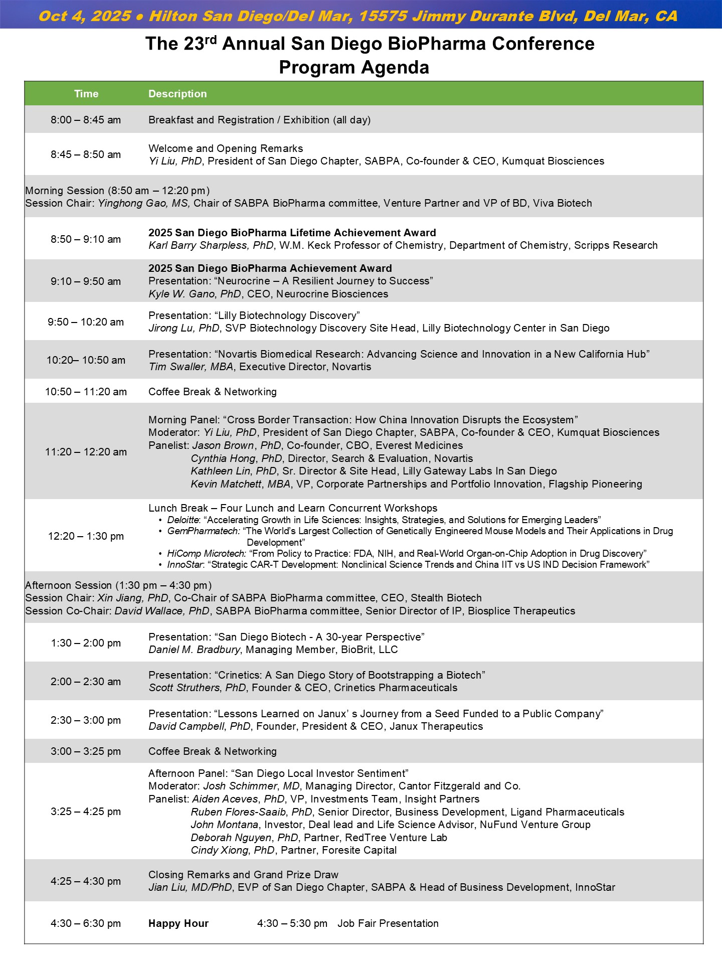Welcome to the 23rd Annual San Diego BioPharma Conference, hosted by SABPA!