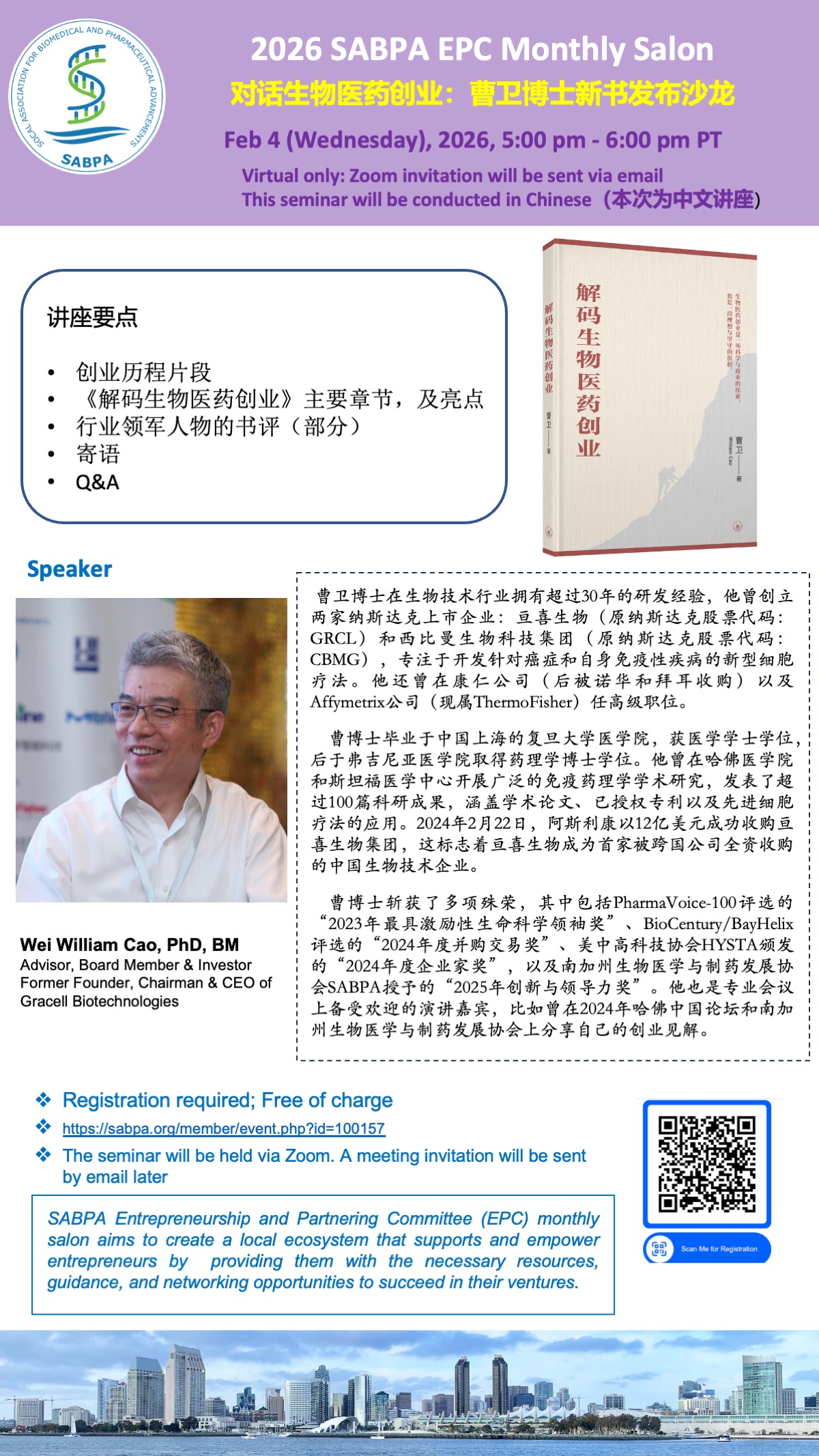 Topic: 对话生物医药创业:曹卫博士新书发布沙龙